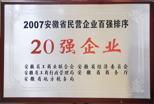 華億集團(tuán)進(jìn)入全省民營(yíng)企業(yè)20強(qiáng),位列第12位。 2007-05 -