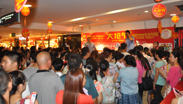 當(dāng)大多數(shù)消費(fèi)者收獲滿滿,走出華億國際購物中心時(shí),“大搶節(jié)”的重頭戲——搶iPhone6和電動(dòng)車的活動(dòng)才剛剛開始。
