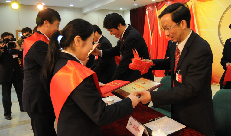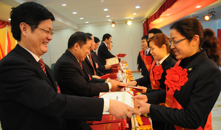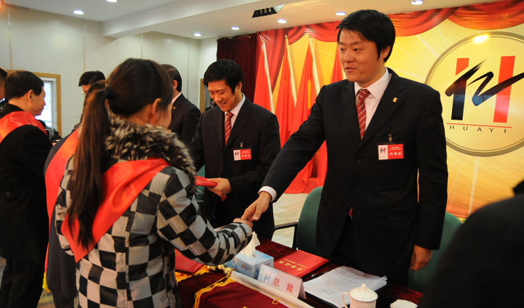 大會在雄壯的《國歌》和《華億之歌》的樂曲聲中開幕。根據大會議程安排,首先對2012年度先進個人與集體進行了表彰,主席臺上的領導為獲獎個人、部門、集體、優(yōu)秀示范店頒獎。先進個人代表、華億國際員工潘玲,華億超市優(yōu)秀示范店代表、繁昌縣孫村鎮(zhèn)徐興店徐陽生,勞動標兵代表、偉晨文化員工劉艷虹,先進集體代表、華億國際常務副總經理張樹華,先后代表獲獎個人和集體上臺發(fā)言。