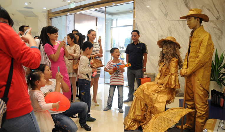 國慶七天,購物中心內(nèi)人頭攢動,銷售異常火爆。為了回饋廣大消費者,華億國際特別推出滿減、購物贈禮、會員抽獎等一系列活動。此外,模特秀、真人秀等活動吸引了眾多顧客圍觀,購物同時,享受了一場視覺大餐。