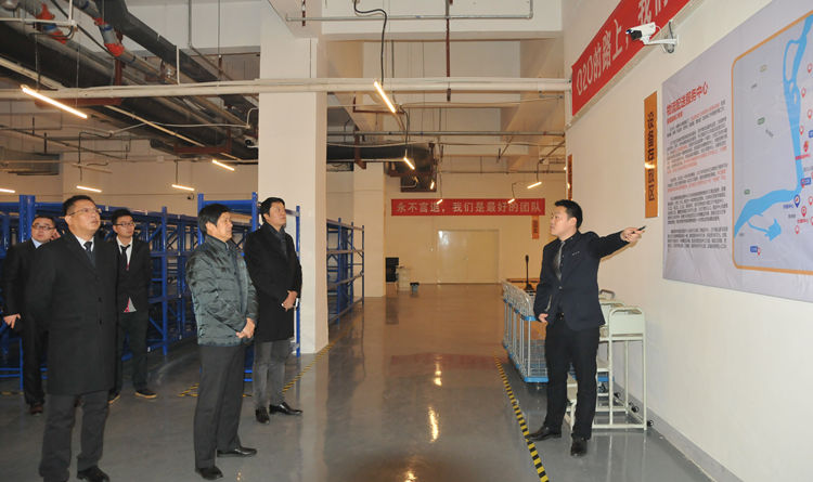 華億樂購電購平臺是集團今年以來傾力打造的區域電商項目,由集團項領總裁親自掛帥主抓,經過近一年的籌備,各條線工作均取得了顯著的階段性成果。上午9時,調研團隊一行來到位于蕪湖鳩江經濟開發區的冷鏈倉儲中心,聽取了相關負責人的現場介紹。項義水董事長對華億樂購冷鏈倉儲中心的建設成果表示肯定,并仔細詢問了冷凍、冷藏設備調試,及生鮮分揀區的試運行情況,要求冷鏈倉儲中心做好運行前的各項調試工作,為華億樂購電商項目的上線和華億超市連鎖項目做好配送服務工作。