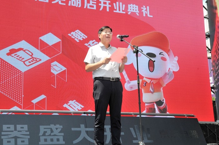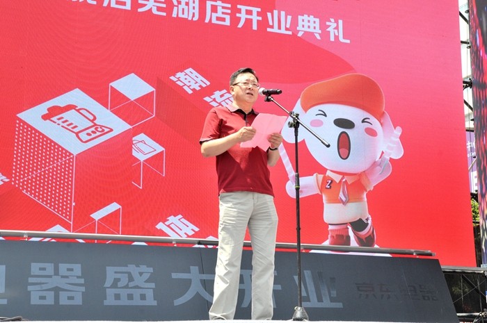 領(lǐng)導(dǎo)共同為京東電器城市旗艦店蕪湖店啟動推桿