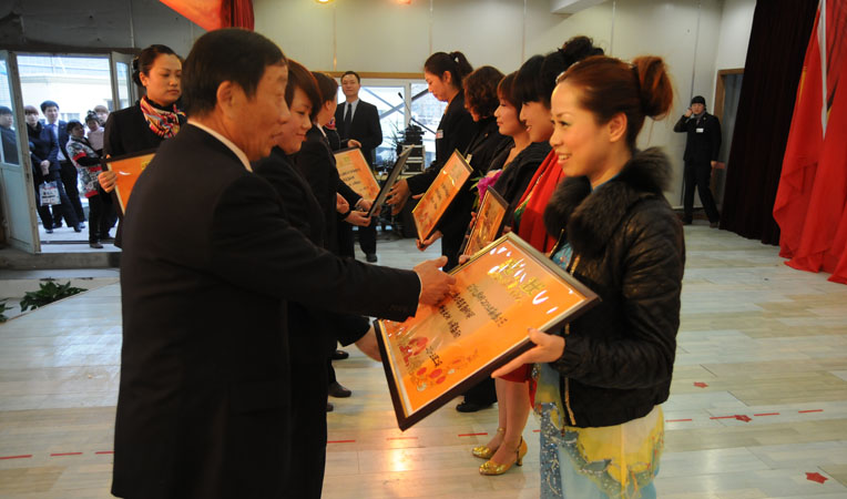 大會在華億國際女子銅管樂隊奏響的《國歌》、《華億之歌》聲中開幕。華億集團副董事長、華億國際副總經(jīng)理章國琴宣讀了2012年度表彰先進的決定。獲獎的先進個人、先進班組及先進部門先后上臺,從與會領(lǐng)導(dǎo)手中接過榮譽證書和獎金,并先后發(fā)表獲獎感言。項領(lǐng)總經(jīng)理代表華億國際經(jīng)營班子,作2012年度工作總結(jié)及2013年工作部署的報告。他說,2012年華億國際圍繞“一個核心、四項重點”開展工作,保證經(jīng)營穩(wěn)定增長的同時,企業(yè)品牌影響力、市場占有率持續(xù)提升。在A座封場改造六個月的情況下,仍超額完成全年目標(biāo)任務(wù),殊為難得。這是公司上下齊心協(xié)力、頑強拼搏的結(jié)果。全年工作,新意迭出,亮點頻現(xiàn),A座升級改造圓滿成功,逐步適應(yīng)了以SKU管理為試點的指標(biāo)量化管理,完成KPI考核的準(zhǔn)備工作,VIP各項活動高潮迭起,合理調(diào)整組織架構(gòu),全面推行預(yù)算管理,安全工作卓有成效,品牌建設(shè)和企業(yè)文化建設(shè)成果巨大。2013年,華億國際將在集團統(tǒng)一領(lǐng)導(dǎo)下,堅持“拓展連鎖規(guī)模,提升服務(wù)價值,豐富旗艦內(nèi)涵,強化支撐體系,深化精細(xì)管理”的工作思路,穩(wěn)步推進“華億國際”對外連鎖拓展;持續(xù)推行“品質(zhì)服務(wù)、從心開始”的理念,提升服務(wù)品質(zhì);進一步提高蕪湖旗艦店的品位,優(yōu)化品牌結(jié)構(gòu),打造模板;促進公司薪酬體系與績效管理逐步邁向正規(guī)化,為連鎖發(fā)展提供支撐體系;以SKU管理為中心,以提高經(jīng)營效益為主旨,持續(xù)把精細(xì)管理推向深入。