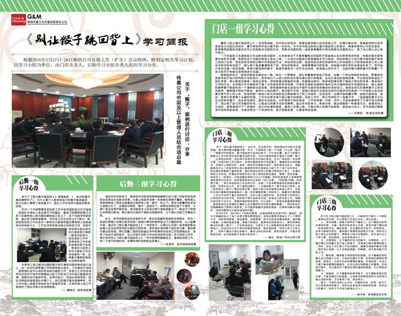日前,偉晨文化公司組織開展了《別讓猴子跳回背上》讀書學習活動,公司五個學習小組經過學習討論,分別形成了學習心得,并制作成學習簡報。