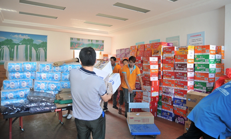 最終,經(jīng)過(guò)兩個(gè)多小時(shí)的艱難行車(chē),我們成功抵達(dá)平鋪鎮(zhèn)漳河大堤災(zāi)區(qū)物資接收點(diǎn),將一車(chē)棉被、手電筒、牛奶、衛(wèi)生紙、礦泉水等災(zāi)區(qū)緊缺物資安全送達(dá)工作人員的手中。