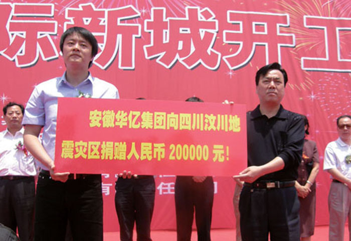 2008年5月12日汶川發生大地震,災情牽動著每一位中國人的心。華億集團為此舉行了莊重的捐款儀式,用于支援災區的同胞。