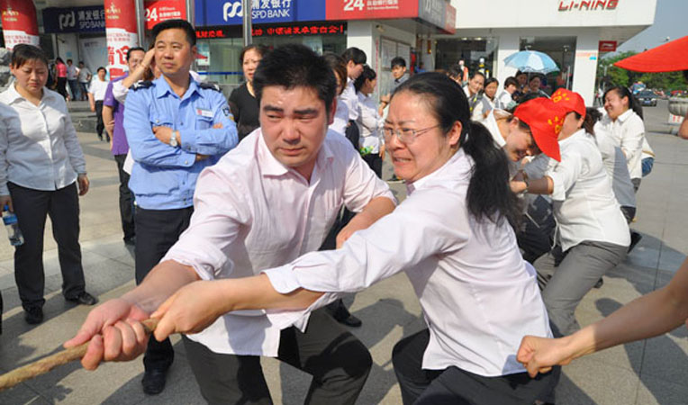 比賽的哨聲一響起,各隊(duì)隊(duì)員們雙手緊握長(zhǎng)繩,憋足了勁拼命往后拉,他們的“粉絲們”自發(fā)組成啦啦隊(duì),口中一起高呼著“加油,加油”為各個(gè)隊(duì)伍加油鼓勁。號(hào)子聲、吶喊聲,此起彼伏,飄蕩在華億國(guó)際的上空。歡騰的場(chǎng)面,感染了步行街上的眾多行人,商場(chǎng)的顧客朋友也紛紛出來(lái)駐足觀看,現(xiàn)場(chǎng)感受華億國(guó)際的文化氛圍。整場(chǎng)比賽氣氛熱烈,秩序井然,展示了良好的組織能力和水平。經(jīng)過(guò)激烈的較量,最終運(yùn)動(dòng)休閑部獲得冠軍,后勤機(jī)關(guān)隊(duì)獲得亞軍,皮鞋皮具部獲得季軍,珠寶、化妝、床品兒用、男裝、女裝五隊(duì)得到了優(yōu)勝獎(jiǎng).