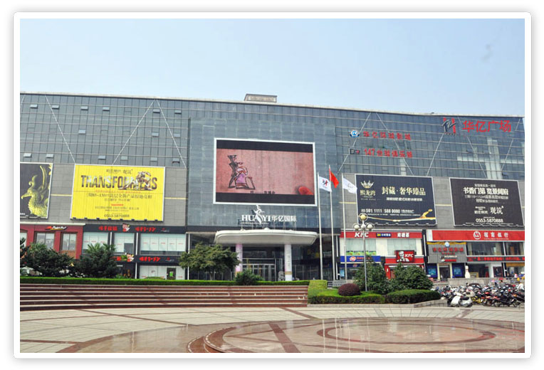 ? ? ? ?偉晨文化在華億廣場外立面上開發高清LED廣告屏用于廣告投放,現已開發華億國際步行街店東南外立面121㎡、華億國際鳩茲廣場店東外立面200㎡、華億國際鳩茲廣場店北外立面102㎡,共計三塊戶外LED廣告位投入使用,優越的地址位置,動態廣告投放方式,成為各大行業動態廣告投放的首選。