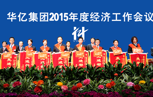 3月18日,安徽華億集團2015年度經濟工作會議在蕪湖市百花劇場隆重召開,近600名來自集團總部和下屬各公司的代表出席了大會。大會由集團黨委書記、副總裁陳愛國主持,集團董事長項義水,總裁項領,副總裁顧踴躍,財務總監劉建林,副總裁杜先松、張靖、錢毅出席大會并在主席臺就座。項領總裁作年度工作報告,項義水董事長發表了重要講話。